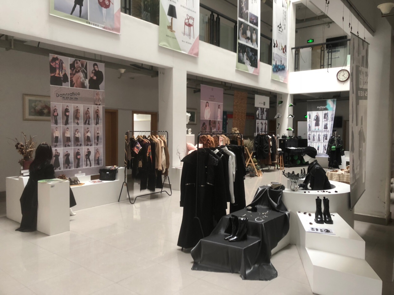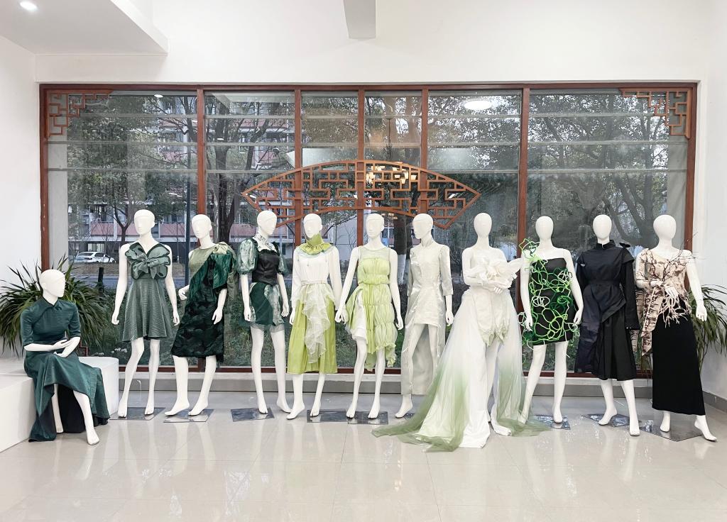 参与本次联展的课程有《项目化女装品类设计》《服装陈列设计》《女装设计1》3门课程,为确保课程的顺利开展与实施,课程进一步整合多方资源,聘请嘉兴雅莹集团技术总监、一叶工作室服装数字化设计师、嘉兴思创服装设计公司培训顾问作为全程指导教师,通过“一课双师”实训教学、项目化教学等方式将企业产品研发模式、服装卖场陈列技法等实践经验引入课堂,在专业老师和企业导师的精心指导下,来自服装与服饰设计专业的70余名学生创作了80余件高水平、高质量的艺术作品,为大家提供了一场内容丰富的艺术盛宴。