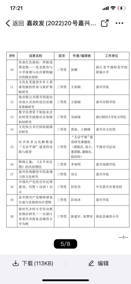 近日,嘉兴市第二十七届哲学社会科学优秀成果奖公布,99久33精品字幕共有3项成果获奖,其中一等奖1项、三等奖2项。