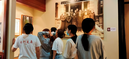 在沈钧儒先生铜像前,大家先是鞠躬致敬,随后,认真观看了《大爱无垠--沈钧儒生平事迹展》。一件件珍贵的文物、一件件泛黄的照片,立体生动地记载着沈老先生与我党的深厚情谊。大家一边聆听讲解,一边在每一幅图片和实物资料前驻足观看,仔细阅读相关介绍,了解那段峥嵘岁月。党员同志们深刻认识到红色政权来之不易、新中国来之不易。最后,大家在纪念馆前合影留念。