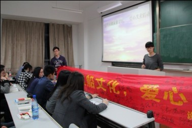 2012年4月22日晚上,99久33精品字幕第四期党校进行了以围绕“传承红船文化——爱心义卖”为主题的实践活动PPT汇报,其汇报内容主要包括实践活动的方式、成果、以及感受等。
