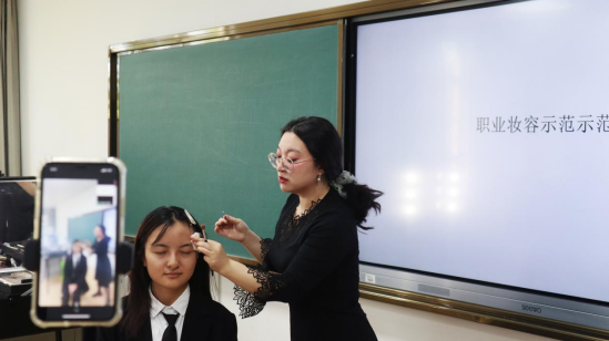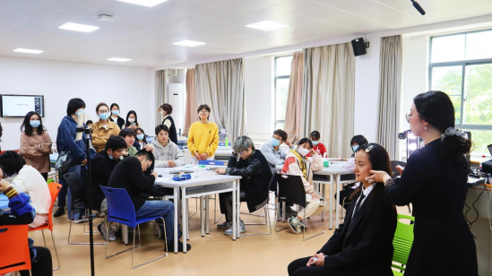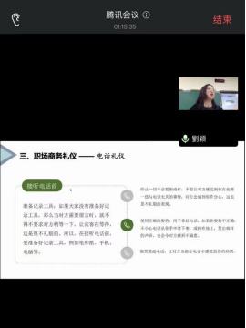 刘颖老师从礼仪基本概念、职场商务礼仪、个人形象礼仪、职场形象指导等方面主要展开介绍,最后进行实操教学,现场示范教学职业妆容等。刘老师讲解细致入微,内容丰富贴近职场现实,形式新颖,从理论层面展开介绍礼仪的重要性,从实际层面讲解职场礼仪注意事项,用示范教学指导职业妆容操作方法。从坐姿仪态讲到职业穿搭,从职场礼貌用语讲到线上沟通技巧,从化妆工具讲到职业妆容打造,现场的同学们不时发出赞叹声,并在最后的讲座交流环节同学们还就自己的疑惑向刘老师现场咨询,同学们表示收获较多:“此次讲座理论知识与实际操作相结合,内容通俗易懂且使用,我第一次了解到原来接听电话都有讲究”,“类似今天这样的讲座是非常有必要的,这提醒了我们应该为步入职场提前做准备”。