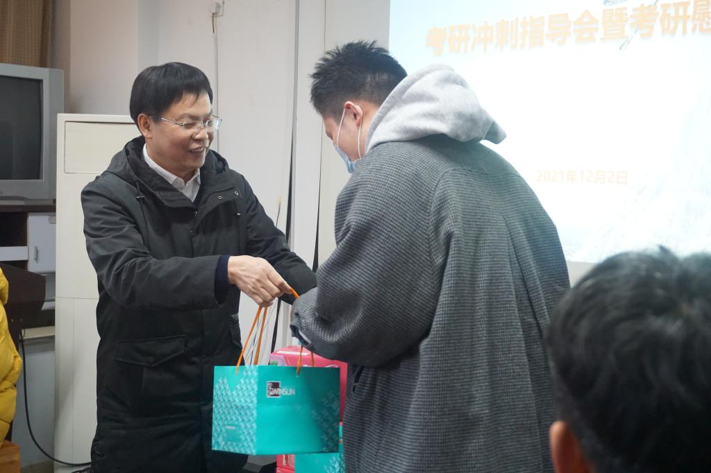 会议首先由韦浩院长向考研学生代表发放了考研慰问品,并合影留念。随后,韦院长做了考前动员讲话。他指出,考研是学业提升的一个重要途径,同学们要规划好自己的学业。要用积极的心态面对考研冲刺复习,利用最后的二十几天,调整心态,劳逸结合,在考研冲刺阶段全力以赴,实现自己的考研梦想。韦院长最后表示,99久33精品字幕历来高度重视学生考研工作,努力在思想、学习和生活等各方面为考研学生提供指导和帮助。希望同学们锲而不舍,坚持到底,预祝每一位考研学子考试顺利,马到功成!
