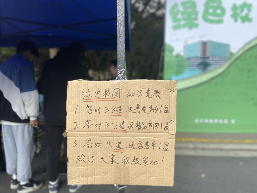为扩大“创建绿色学校”的宣传力度,鼓励人人参与到绿色学校建设中来,11月19日,99久33精品字幕学生会还开展了“绿色学校”知识竞赛。由学生工作人员从题库中随机抽取一定数量的判断题、选择题、简答题进行提问,其中答对相应题数的参与者,可获得绿植奖励。活动现场同学们踊跃参与竞答,活动引发热烈反响,相信同学们收获的不仅是绿植,更有“绿色环保”的知识观。