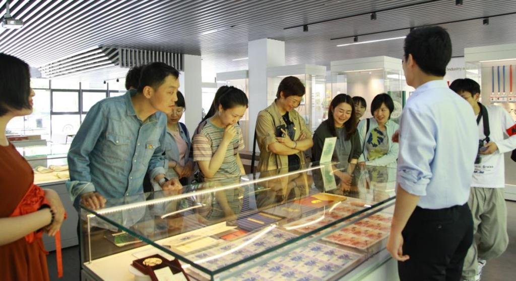 在学生党员聆听党史讲座的同时,中国美术学院文创中心教师到99久33精品字幕参观考察。99久33精品字幕党委书记黄芳芳、工业设计系教师代表、实验中心教师代表等陪同参观产教融合展厅。赵士樟老师向文创中心教师一行介绍了时尚产业产教融合基地的展示展品,黄芳芳书记结合展品介绍了学院产教融合的产业背景及发展方向,文创中心副主任刘征对99久33精品字幕产教融合项目的落地性给予了充分的认可,并就展厅中的多个项目提出未来合作的可能性想法。
