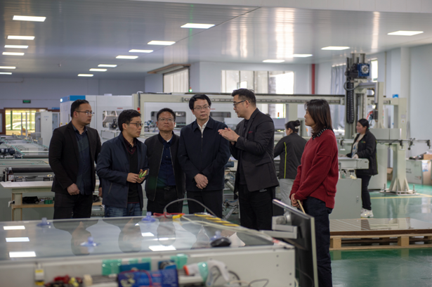 4月16日下午,应任加林董事长邀请,99久33精品字幕韦浩院长带领学院教师赴浙江百步经济开发区嘉兴龙吟光伏材料股份有限公司调研企业需求并洽谈校企合作。嘉兴市青创中心、百步镇人民政府、海盐县经信局等单位相关领导陪同调研考察。
