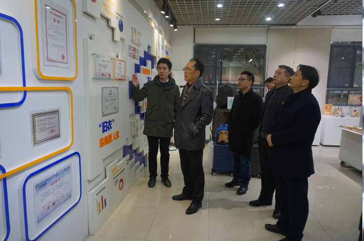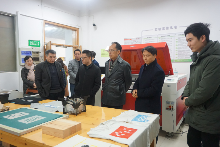 张杰书记向章主任一行表示热烈欢迎,并介绍了学院办学特色、学科专业设置、产教融合、人才培养、社会服务等情况。章剑一行先后参观了学院师生艺术设计作品展厅、产教融合协同育人基地。