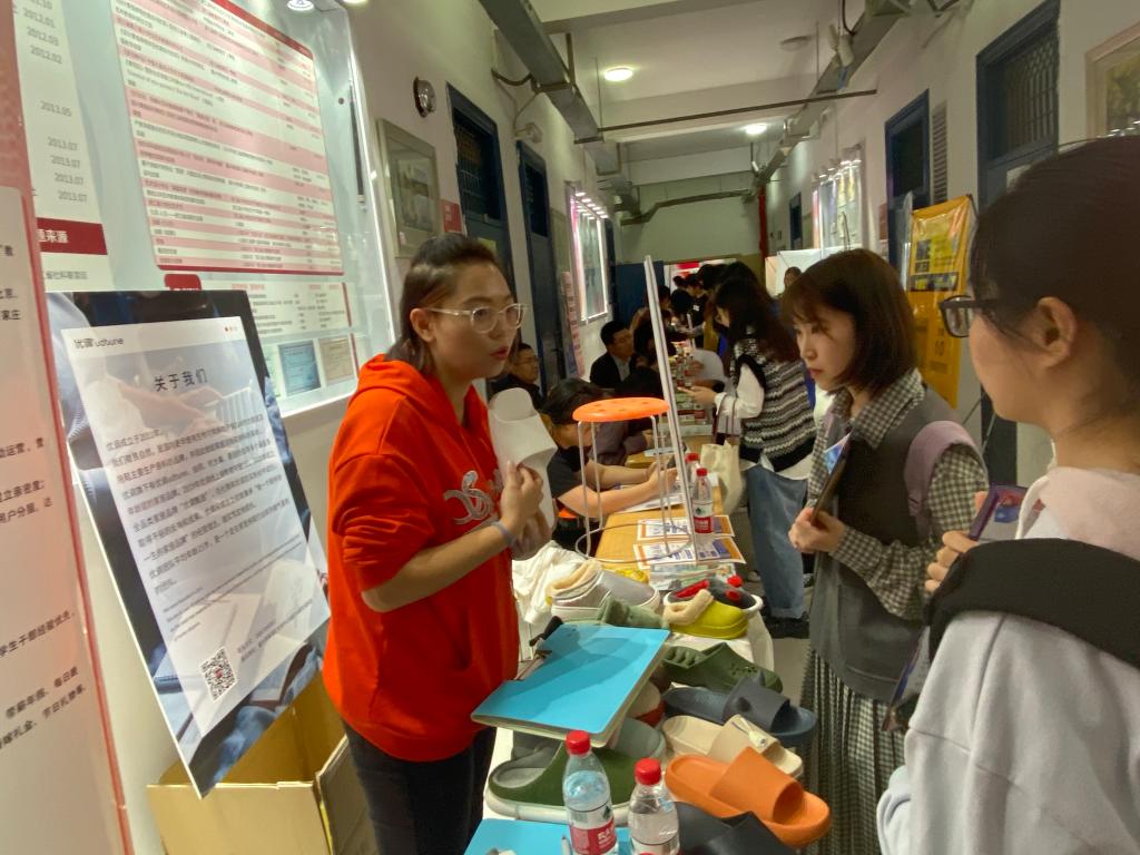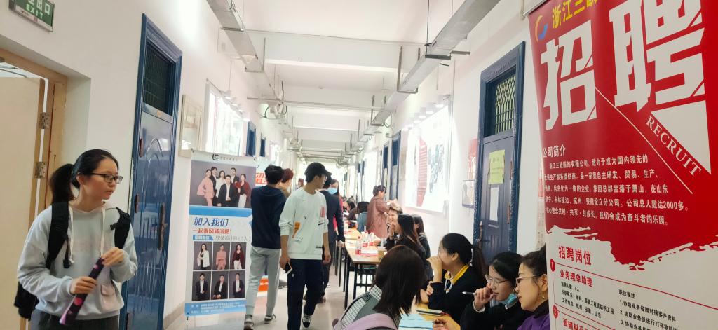招聘会现场人头攒动,学生们带着精心准备的简历和作品集前来应聘,经过详细咨询后向心仪单位投递精心准备的简历、表达求职意向。同学们一致认为:“参加组团招聘会比企业专场宣讲会更有效率,能节约不少时间,企业类型多样,提供的岗位也多样,对学生来说选择余地更大。” 浙江宝仕龙集成家居股份有限公司招聘负责人戴总对本次招聘会的举办效果表示满意:“这种形式吸引的学生流量比单次宣讲会更丰富、集中,今天下午我们把所有有意向的学生集中一起,由公司商学院同事进行集中宣讲,宣讲更具有针对性,相信我们一定能招到合适的人才。”