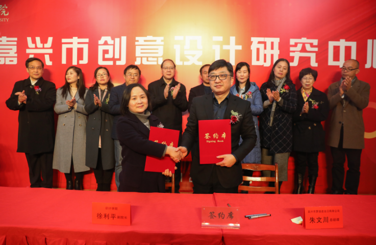 12月23日下午,我校与嘉兴市经济与信息化局共建“嘉兴市创意设计研究中心”签约仪式在梁林校区举行。校党委书记黄文秀、副校长胡俊云,市经信局党组书记、局长卓卫明,副局长倪英出席仪式。校党委委员、人文社科处处长富华主持仪式。