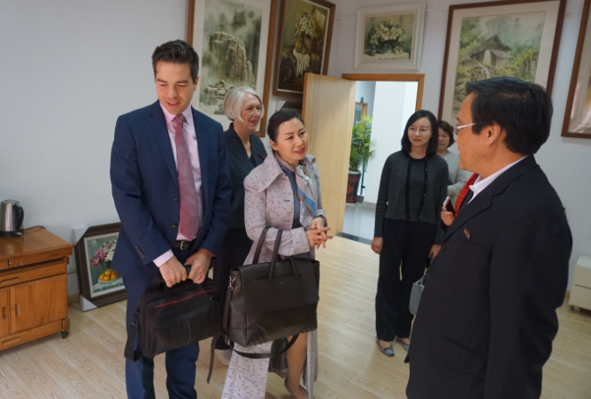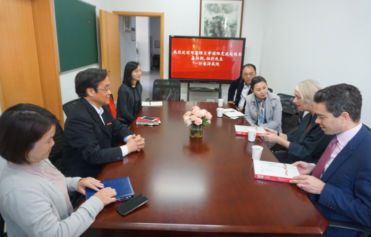 11月14日下午,英国布莱顿大学国际交流处处长嘉拉斯拓扑先生一行到学院进行参观访问,学院鲁恒心院长热情接待了代表团一行,国际教育学院负责人施敏颖陪同访问。