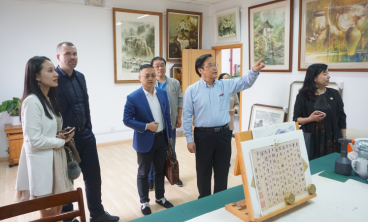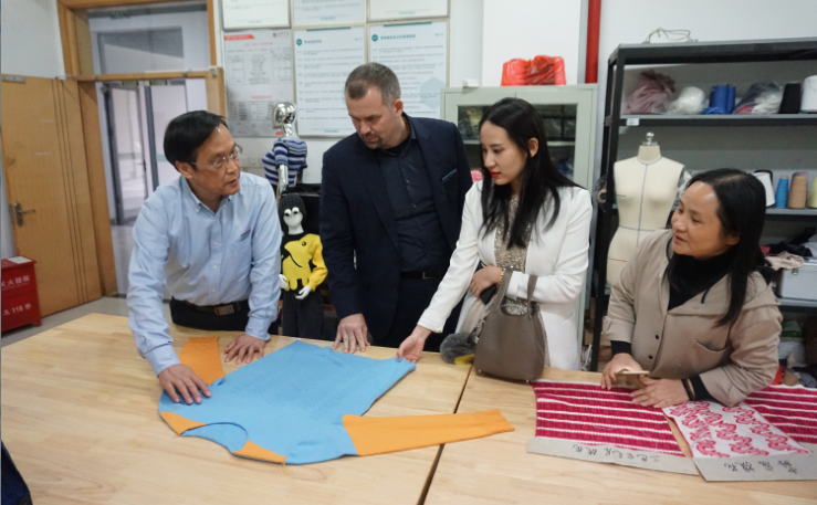 鲁恒心院长对Martin Adam先生一行的来访表示欢迎,并简要介绍了学院各专业的基本情况和办学特色优势。代表团一行参观了学院毕业生作品展、服装设计与工程实验室等,走进学院画室和课堂参观交流等。对学院的服装设计与制作工作、中国画以及各专业实验室留下了深刻的印象。