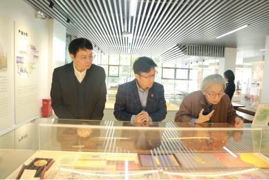 学院主要负责人对张延忠的到来表示热烈欢迎和衷心感谢,并陪同张延忠一行参观了学院学生“真题实做”作品展厅、学院产教融合成果展厅、学院服装设计作品陈列厅,学院工作人员详细介绍了三个展厅的展示作品,韦浩院长结合展品向张延忠女士介绍了学院产教融合的产业背景及发展方向。张延忠女士对我院师生创意设计作品给予了高度的评价,她表示这些形式多样、各具特色的作品既有审美价值、纪念价值,又有实用价值和传播价值,她希望学院师生要坚决守好“红色根脉”,大力弘扬伟大建党精神和红船精神,充分发挥专业特长,设计出更多具有创造力的文化作品,进一步促进嘉兴“两个文化”的赓续传承,为地方经济社会发展贡献更大力量。