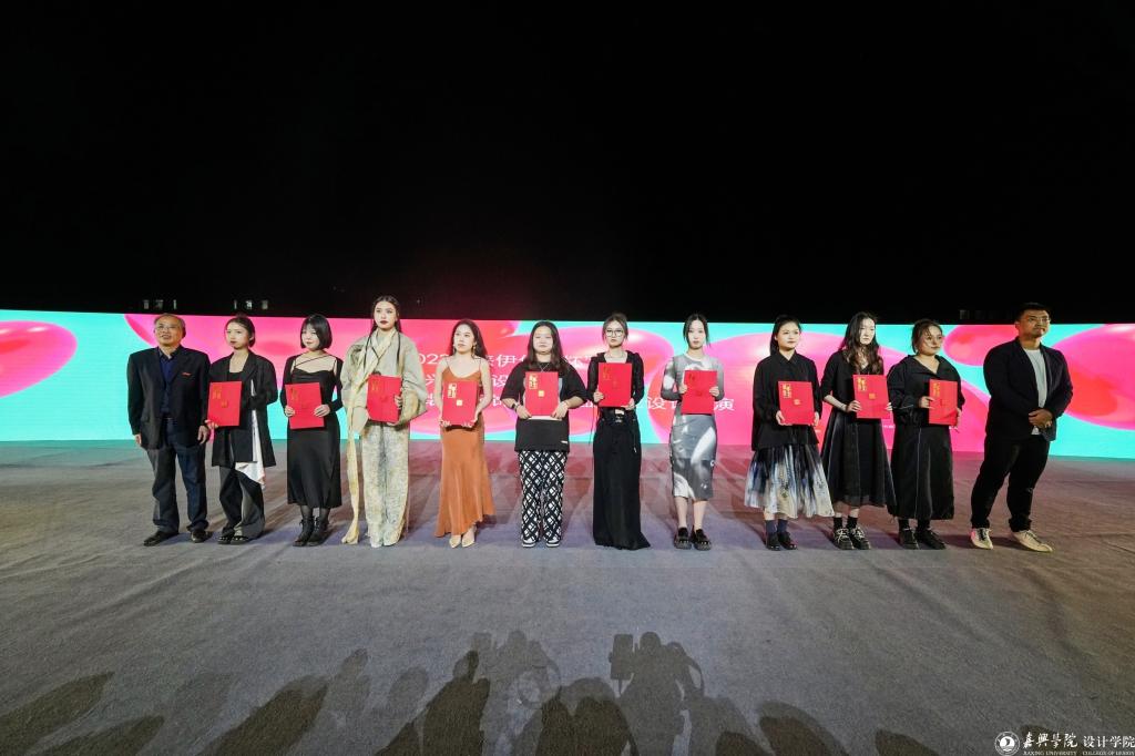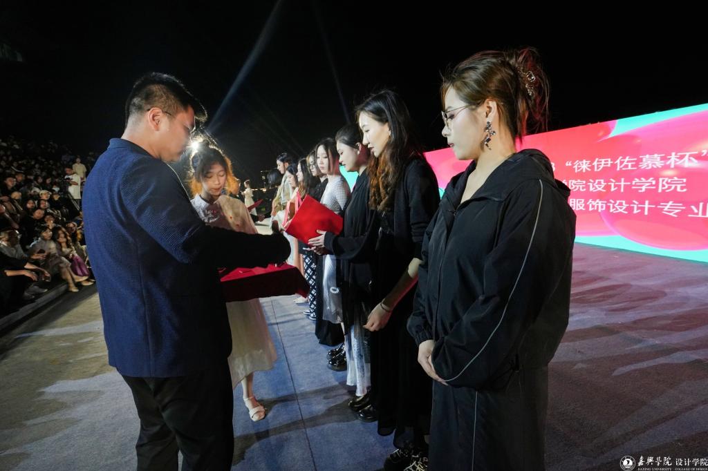 4月17日晚,嘉兴学院99久33精品字幕 2023届毕业设计系列展演暨“徕伊佐慕”服装动态展演活动在嘉兴学院虹源湖畔华丽上演。一组组独具匠心、时尚靓丽的服装作品闪亮T台,点燃了青春激情,为现场的观众们奉献了一场大气唯美的服装视觉盛宴。嘉兴学院党委副书记钱方明、广州徕伊佐慕服饰有限责任公司董事长何成啸、兄弟院校教师代表、嘉兴市河南商会领导、学校相关职能部门和二级学院领导出席并全程观看了展演活动。