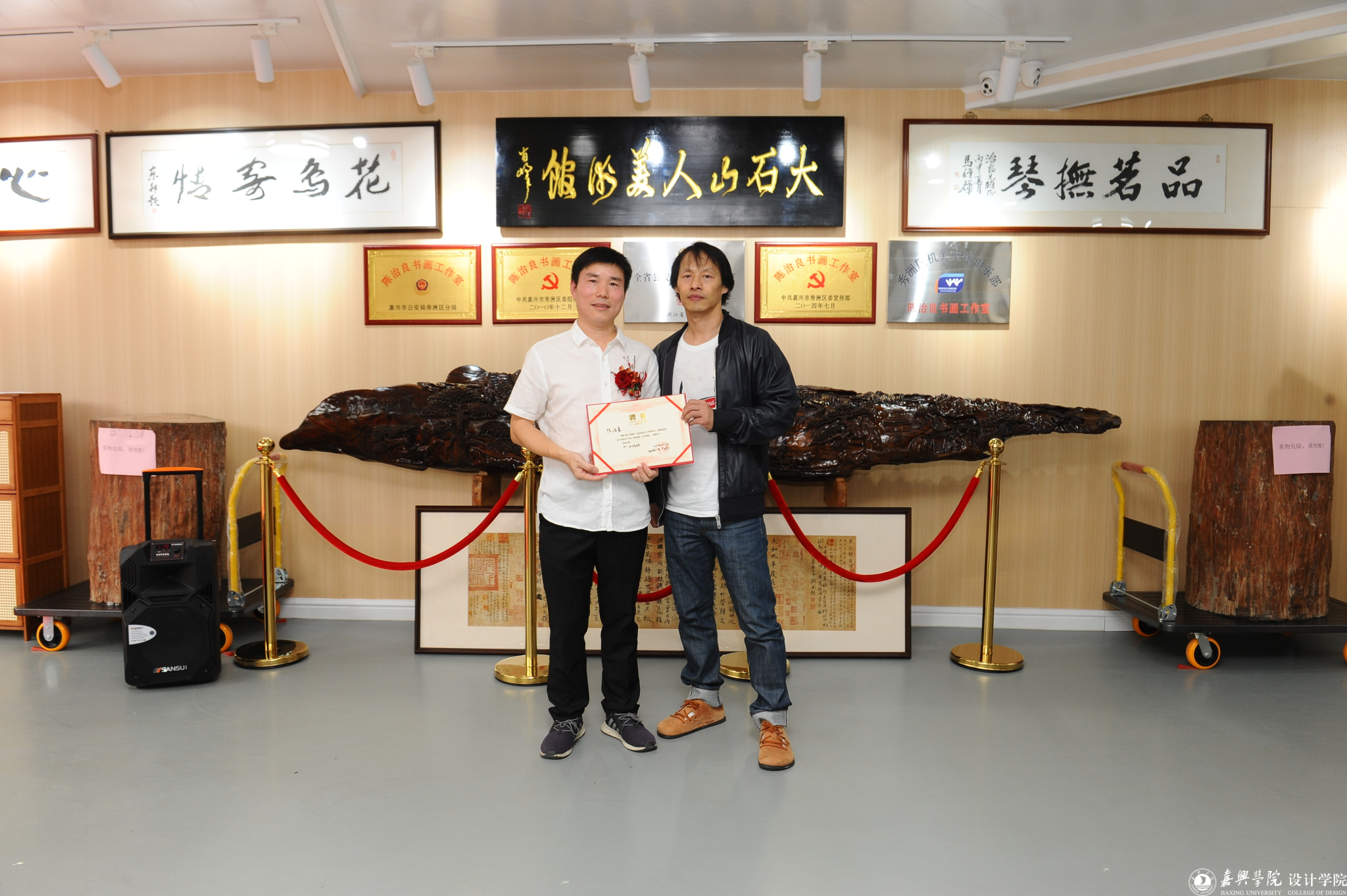 10月9日下午,在秀洲区大石山人美术馆举办的“陈治良大写意中国画作品展”开幕式上,陈治良先生受聘为我院校外导师,视传系系主任王赟平为陈治良颁发校外导师聘书。