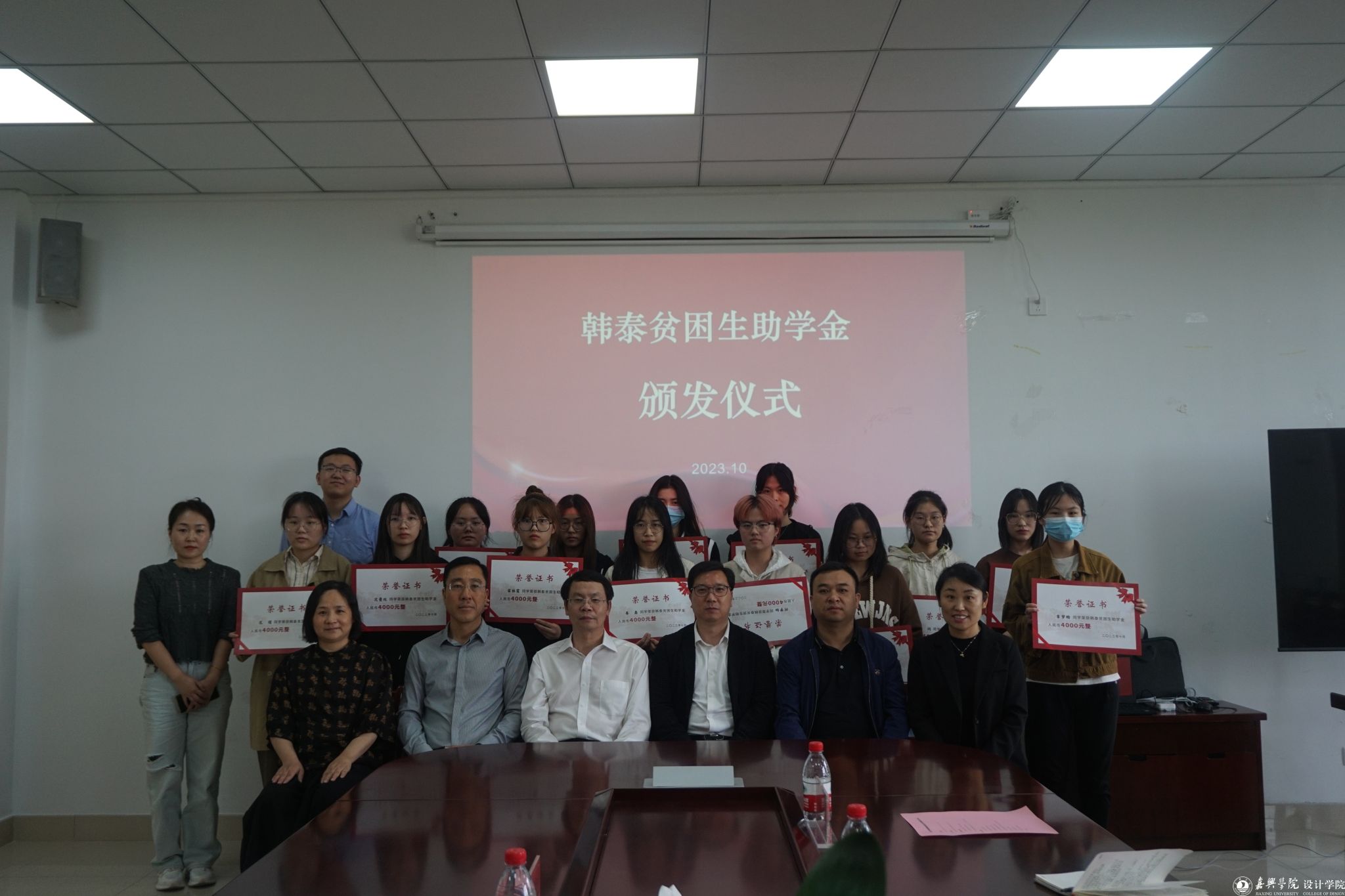 会上,徐利平逐一介绍了到场领导和嘉宾,并回顾了助学金的评选情况。随后韦浩宣读了表彰决定,顾忠伟和倪杰为获奖同学颁奖。获奖学生代表沈曼玟上台发言,分享了她对企业和学院的感恩之情,希望未来自己在设计行业能有一番作为。