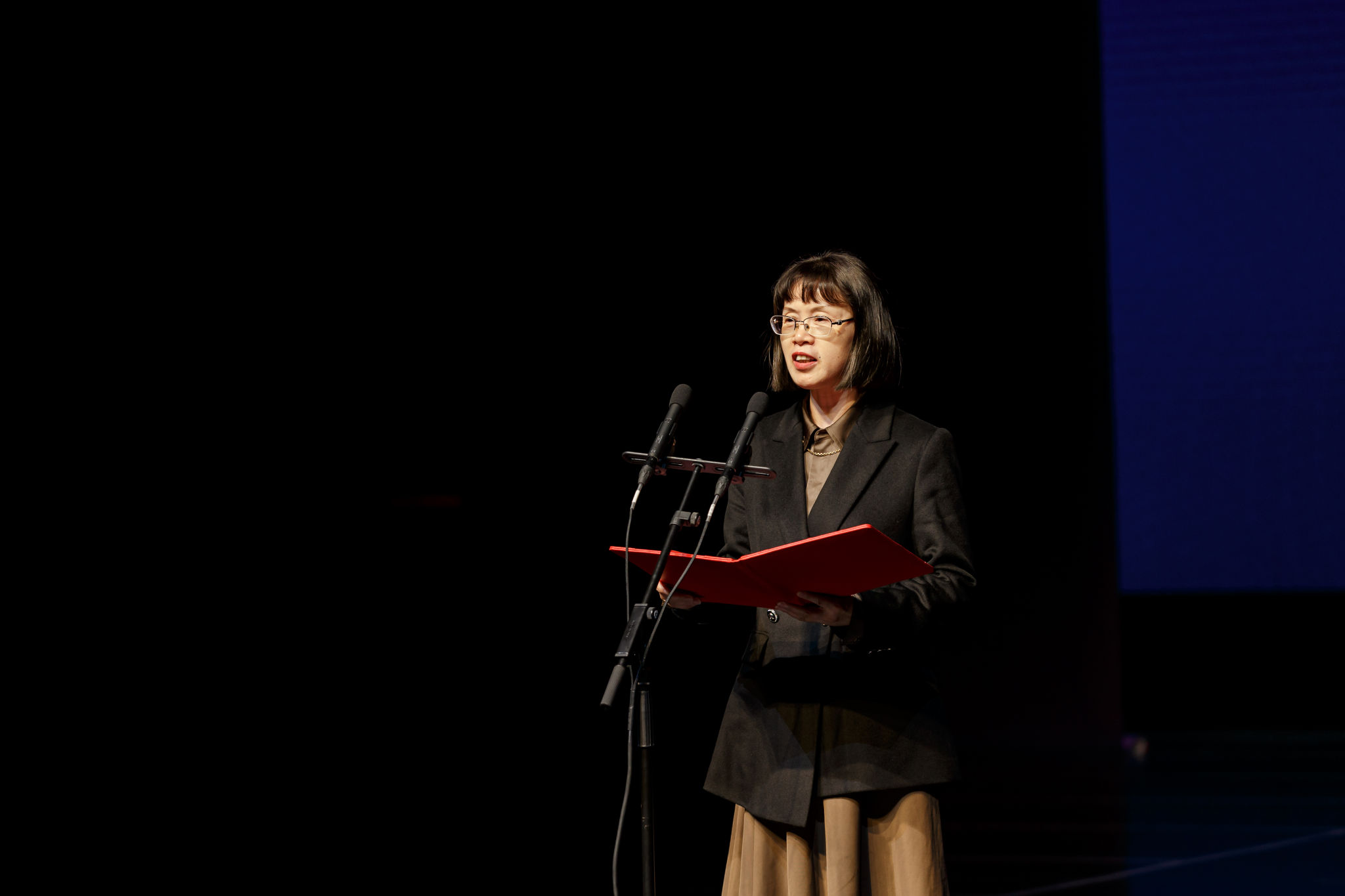 嘉兴市政协副主席、民建嘉兴市委会主委戴铭宣布嘉兴大学99久33精品字幕2024“爵派尔”杯服饰专业毕业设计作品动态展演暨毕业设计系列文化展演活动开幕。