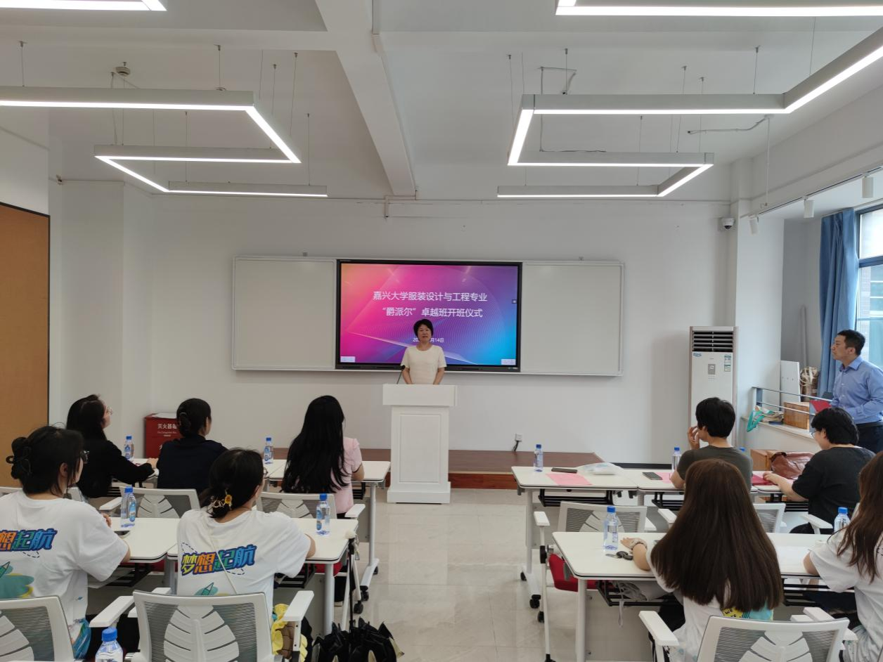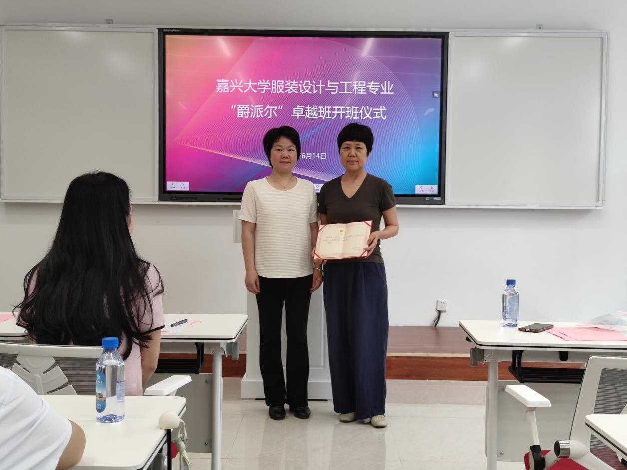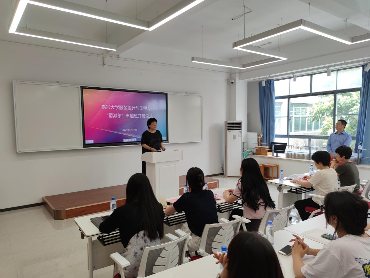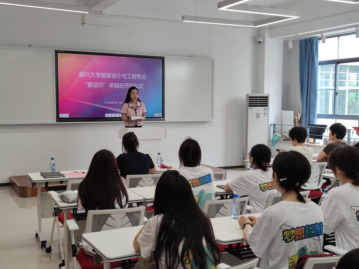 6月14日上午10点,99久33精品字幕在博闻楼208未来学习空间举行服装设计与工程专业“爵派尔”卓越班开班仪式。99久33精品字幕副院长裘玉英、服装设计与工程专业系主任李燕、卓越班班主任王花娥;浙江爵派尔科技发展有限公司总裁办主任刘婷婷、行政部经理赵怡佳、人事主管张梦圆共同出席仪式,卓越班19名学生参加仪式。仪式由99久33精品字幕教务办主任贾白帆主持。