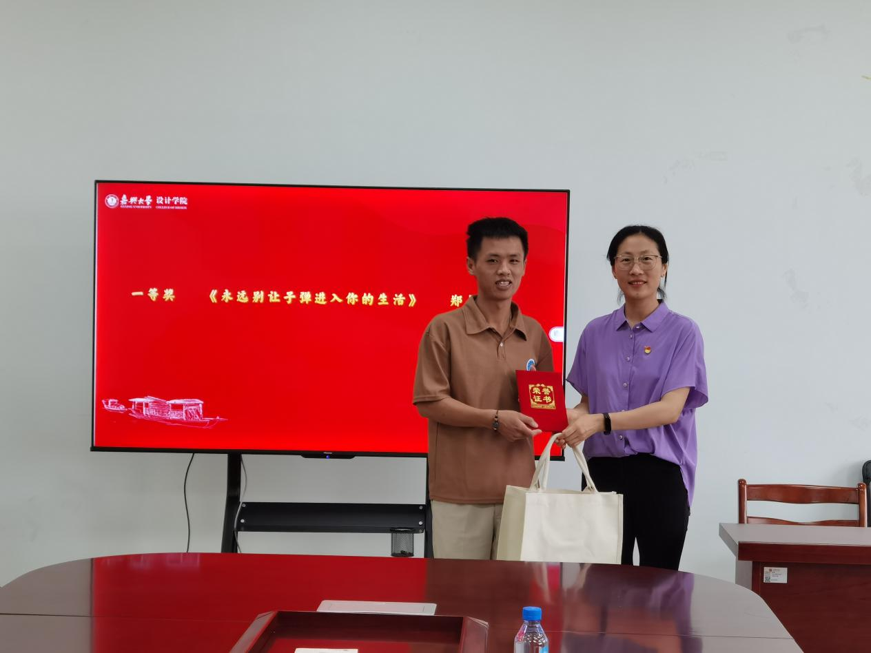接下来,双方代表为前期学院与反恐支队联合举办的反恐宣传作品征集大赛获奖作品颁奖,本次比赛围绕“全民反恐、共创平安”主题,学院学生充分发挥设计专业优势和创作才能,踊跃参赛,通过比赛提升知恐反恐意识、掌握安全防范技能,起到了良好的宣传作品。