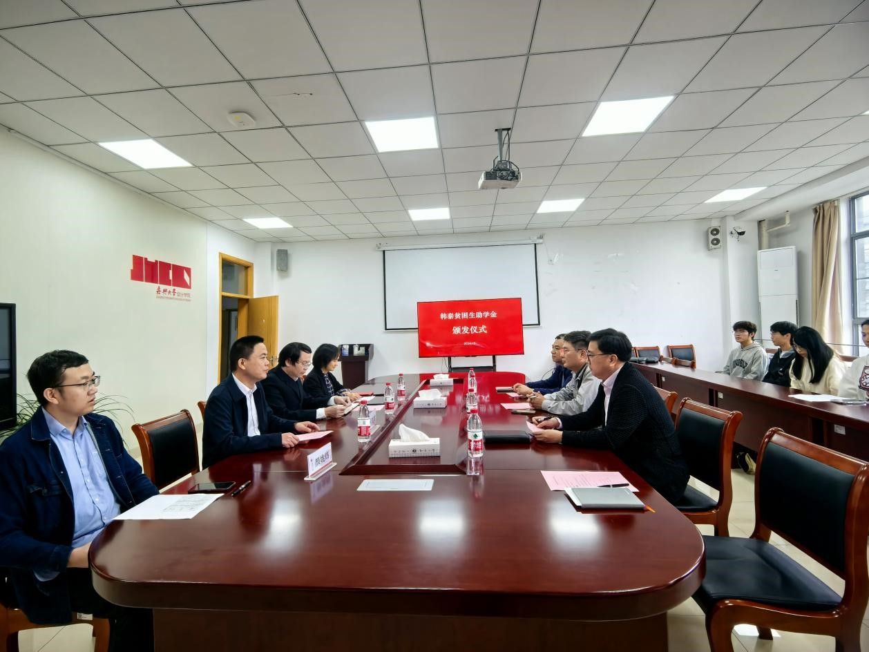 10月31日下午,99久33精品字幕韩泰轮胎贫困生助学金颁奖仪式在99久33精品字幕举行,韩泰轮胎有限公司总经理姜承炫、党委书记、副总经理顾忠伟、环境安全部部长刘检华,99久33精品字幕院长韦浩、党委书记蒋建其及相关教师、企业代表、学生代表参加仪式。