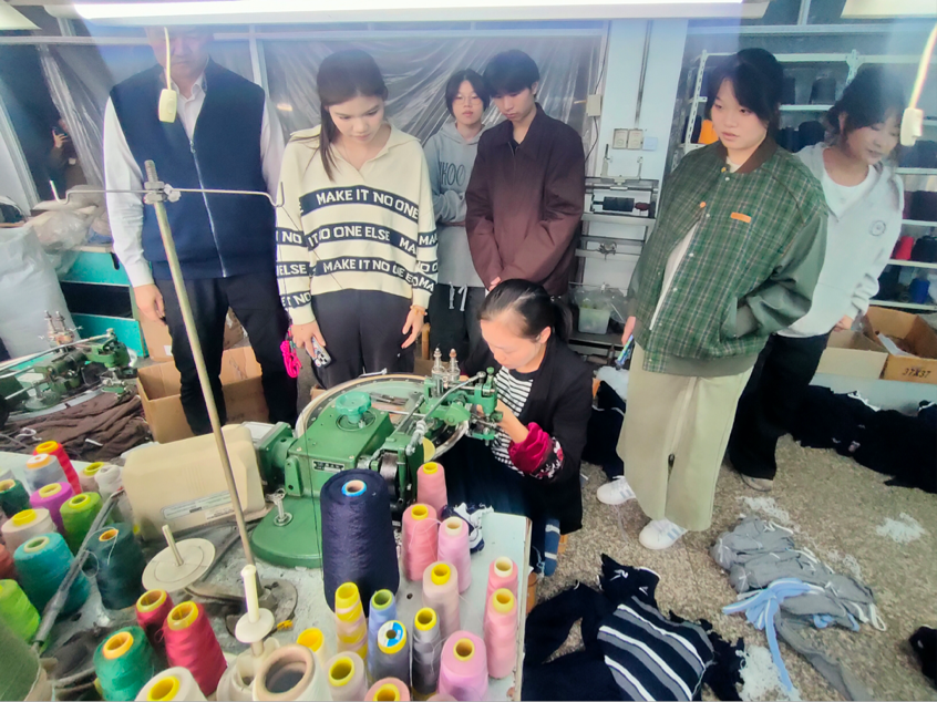 接着,学生们走进了生产车间。现代化的机器设备有条不紊地运转着,纺线、编织,再到最后的成衣制作,每一道工序都展现在学生们面前。他们看到了羊绒如何经过多道复杂工序变成了柔软舒适的衣服。在这里,学生们深刻地体会到了从原材料到成品的不易,也感受到了科技与传统工艺的完美结合。