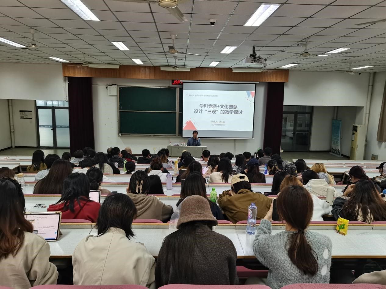 在讲座中,周斌教授以其深厚的学术底蕴和独特的视角,从设计教学的“学科竞赛”意识观、设计教学的文化创意观如何练就、设计教学的实践应用观出发,深入剖析了学科竞赛与文化创意设计之间的内在联系。他指出,学科竞赛是提升学生实践能力和创新思维的重要途径,而文化创意设计则是推动社会进步和文化传承的重要力量。将两者相结合,不仅可以培养学生的综合素质,还可以为社会的创新发展贡献力量。周教授的见解独到,赢得了在场听众的阵阵掌声。
