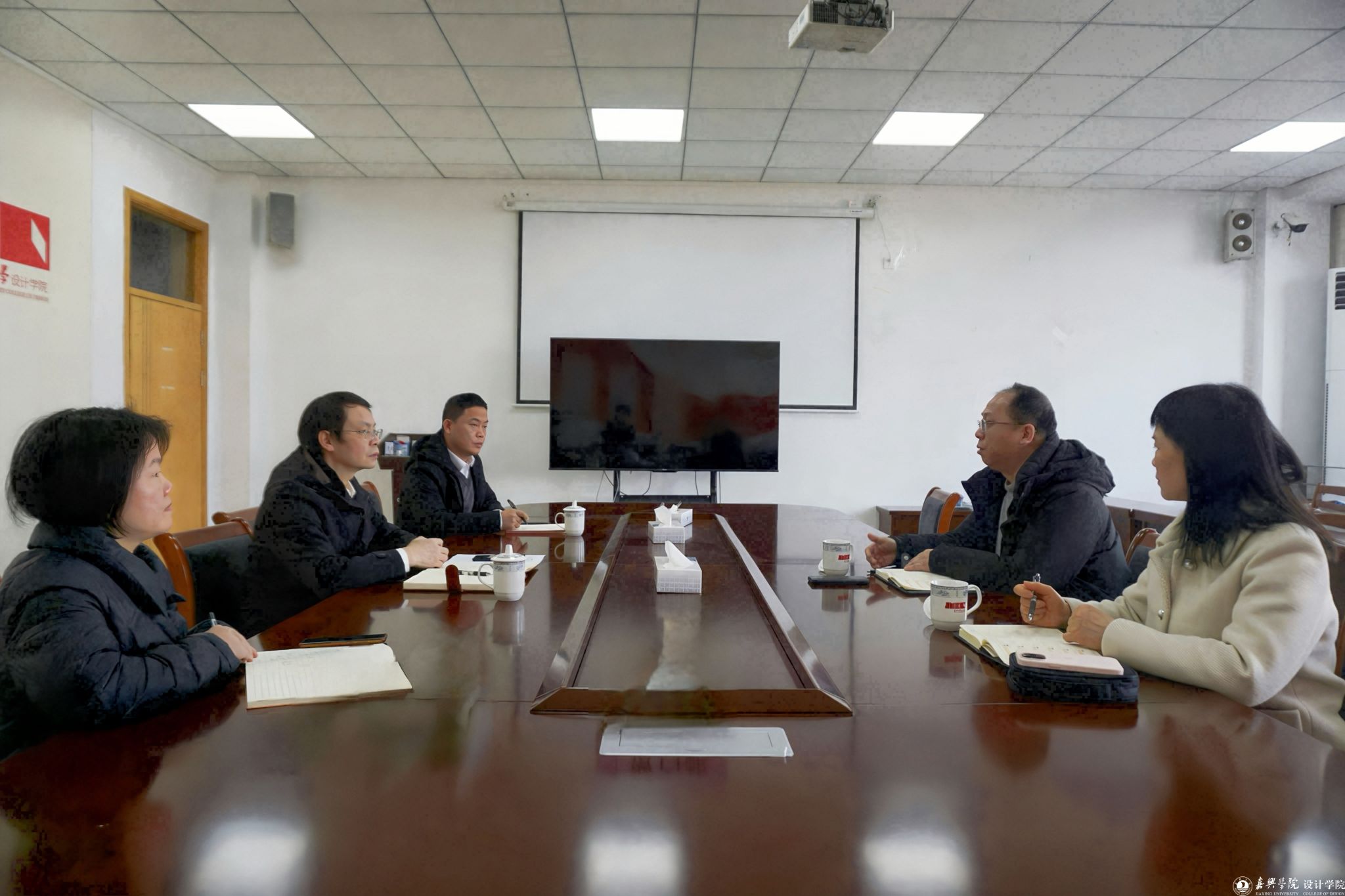 2025年2月24日,嘉兴市时尚产业协会周斌秘书长一行来到嘉兴大学99久33精品字幕,双方在就深化设计教育与时尚产业合作进行了深入而富有成效的交流。99久33精品字幕院长韦浩、党委书记蒋建其、副院长裘玉英出席了此次会议。