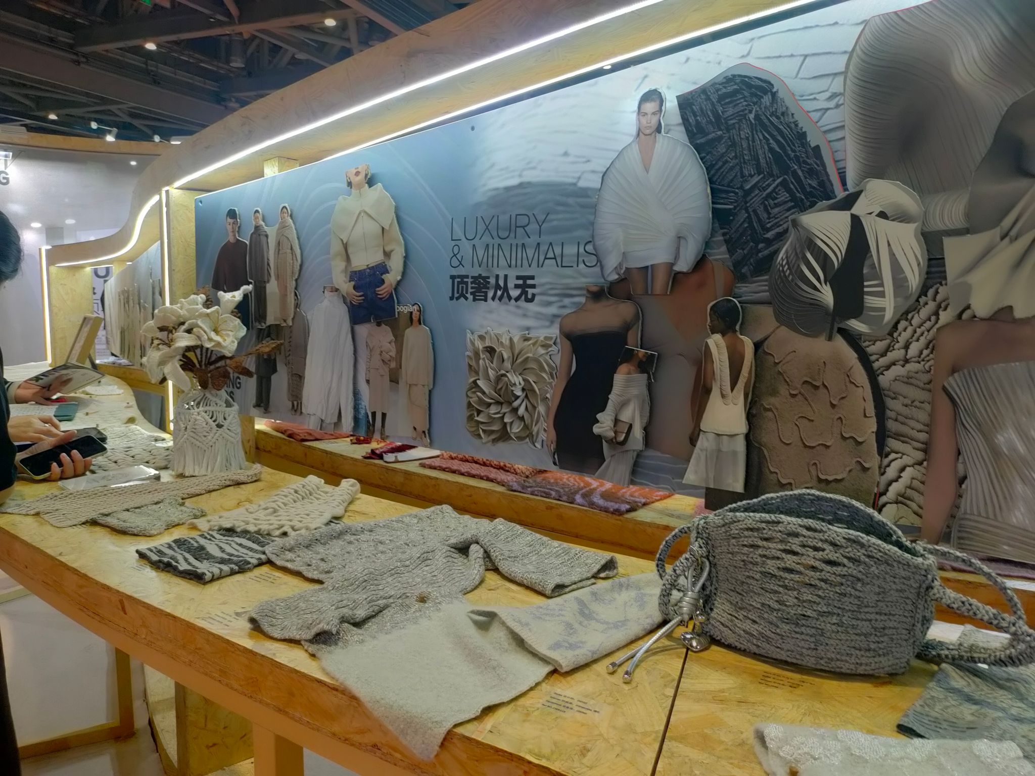 展区以柔美的曲线设计贯穿整个展示空间,通过“丹雅部落”“维基生命”“顶奢从无”等主题,集中呈现了最新的针织流行趋势、创新纱线及设计作品,为观众提供了丰富的时尚体验。