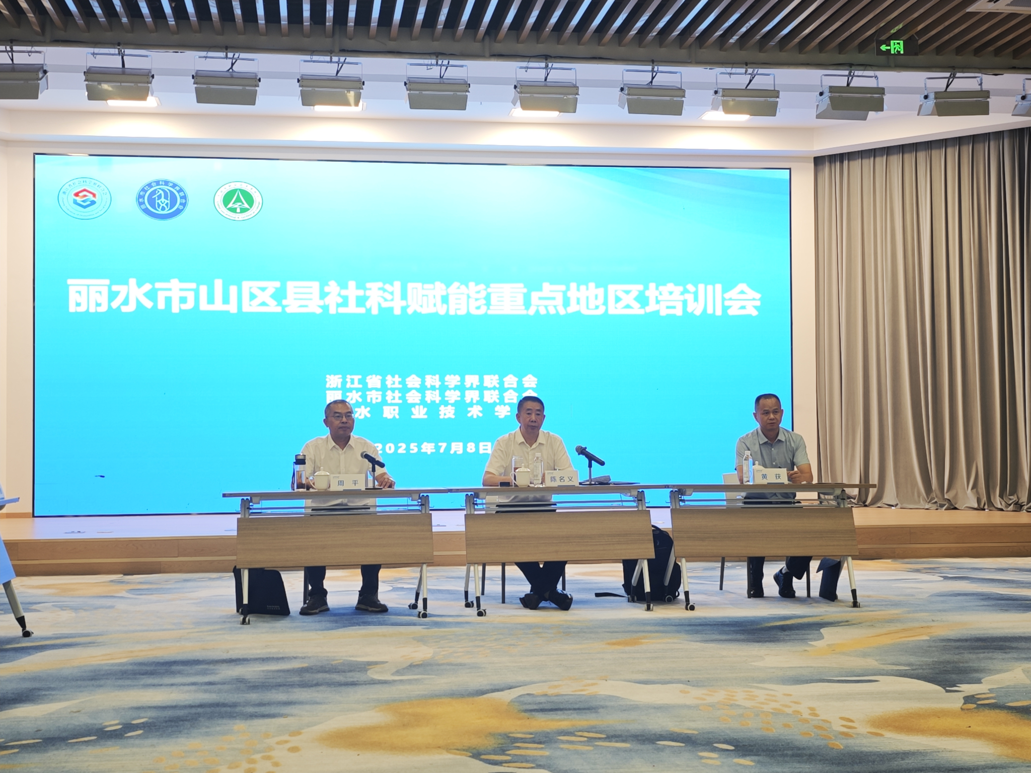 7月8日,由浙江省社科联主办的山区县社科赋能重点地区培训会在丽水职业技术学院召开,我院教师李大伟博士作为重点村社科赋能专家团队负责人参会并作项目汇报。此次培训会聚焦社科赋能专项行动,旨在深化社科理论与地方实践的结合,推动山区县乡村振兴与高质量发展。会议由丽水市社科联专职副主席周平主持,浙江省社科联秘书长陈名义、社科团体处处长黄获等出席,来自丽水市及下辖山区县的社科联负责人、十个重点村村干部、社科赋能专项课题项目组成员参与培训。