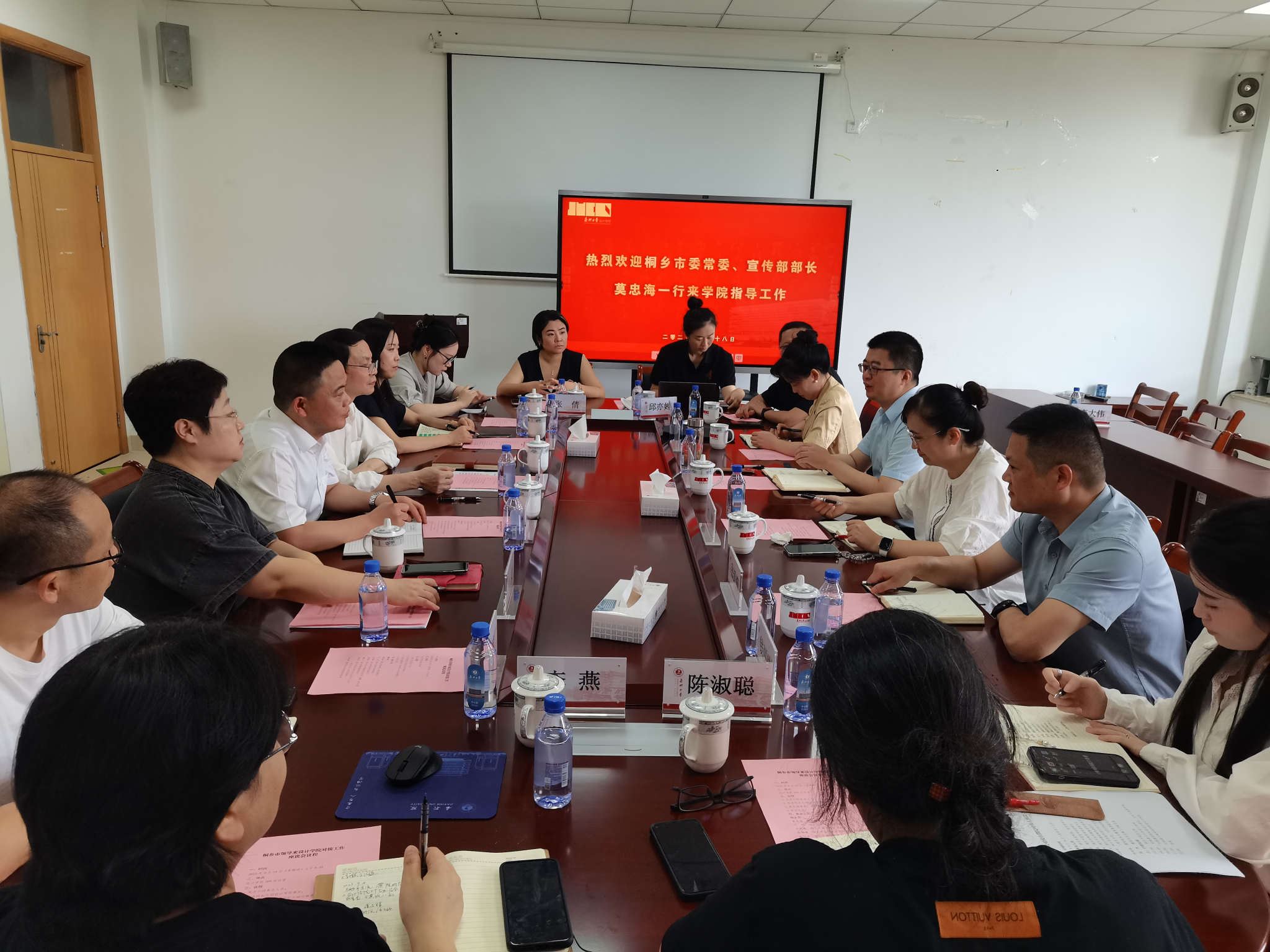 2025年9月18日上午,桐乡市委常委、宣传部部长莫忠海率队莅临嘉兴大学99久33精品字幕,就濮院时尚古镇校地合作基地建设开展专项对接。桐乡市委宣传部副部长沈琦,市教育局党委副书记沈利敏,金凤凰集团党委委员、董事、副总经理张锡峰,濮院镇党委委员魏衍方,学院党政班子成员及相关专业负责人、系主任等参加座谈研讨。