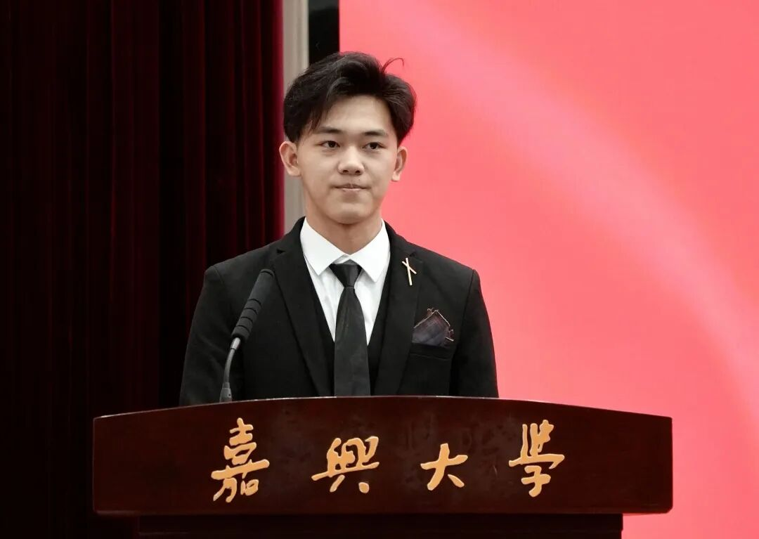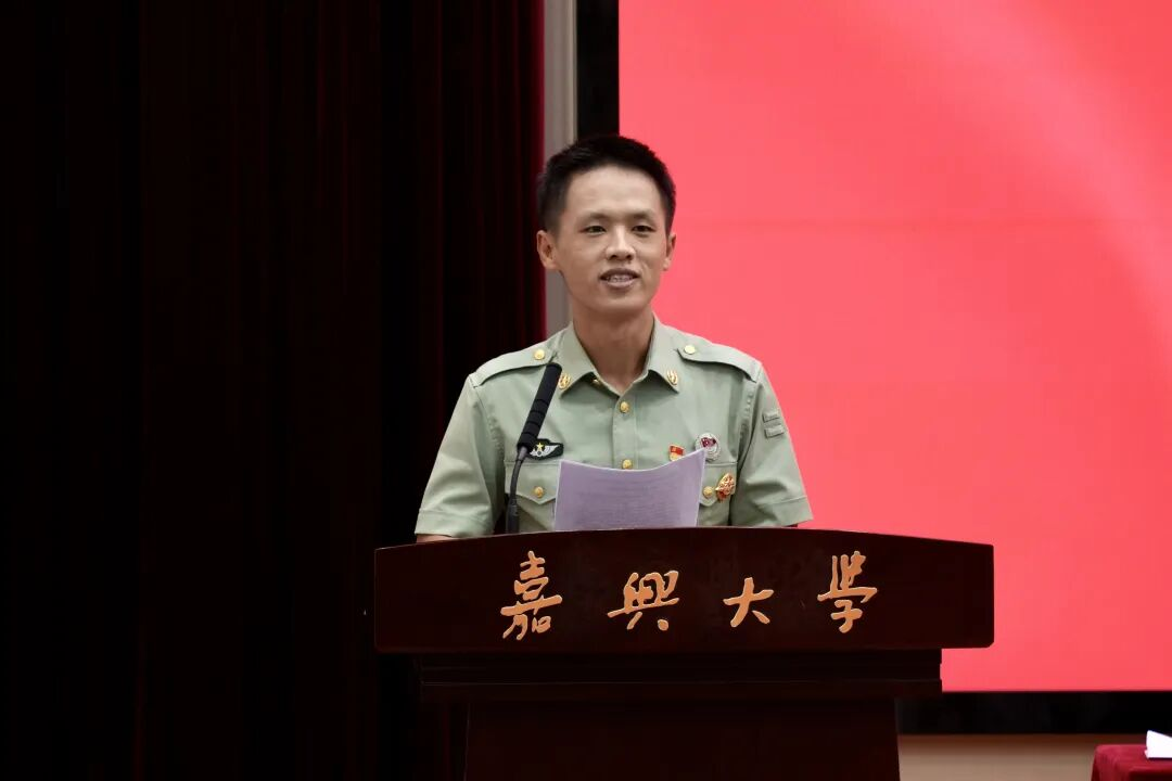 嘉兴大学2024年大学生年度人物环设221班郑晨辉同学以军旅淬炼的经历和感悟为主线,与学弟学妹们分享设计之路的“四重奏”:鼓励学弟学妹们以设计报国为理想、以伟大复兴为己任、以刻苦钻研厚基础、以踏实奋斗创未来 。