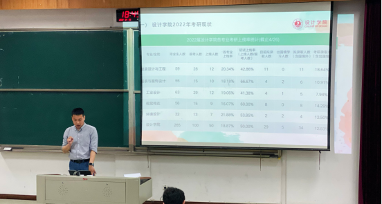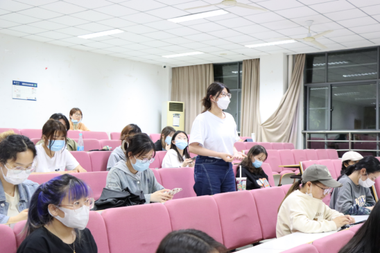 随后,叶砚介绍了我院2022届考研基本情况,通过数据分析总结规律,帮助2023届考研意向学生找准方向。接着,李端老师为同学们介绍研究生考试流程,院校选择注意事项,研究生复习要点等,并现场答疑解惑,解决同学们的个性化问题。最后,2022届考研优秀学生代表唐梦悦、何洁两位同学分别详细讲述了自己的考研之路,从专业选择、复习攻略、心态调整、复试准备、调剂策略等方面分享经验和感悟,帮助学弟学妹们扎实迈出考研第一步。