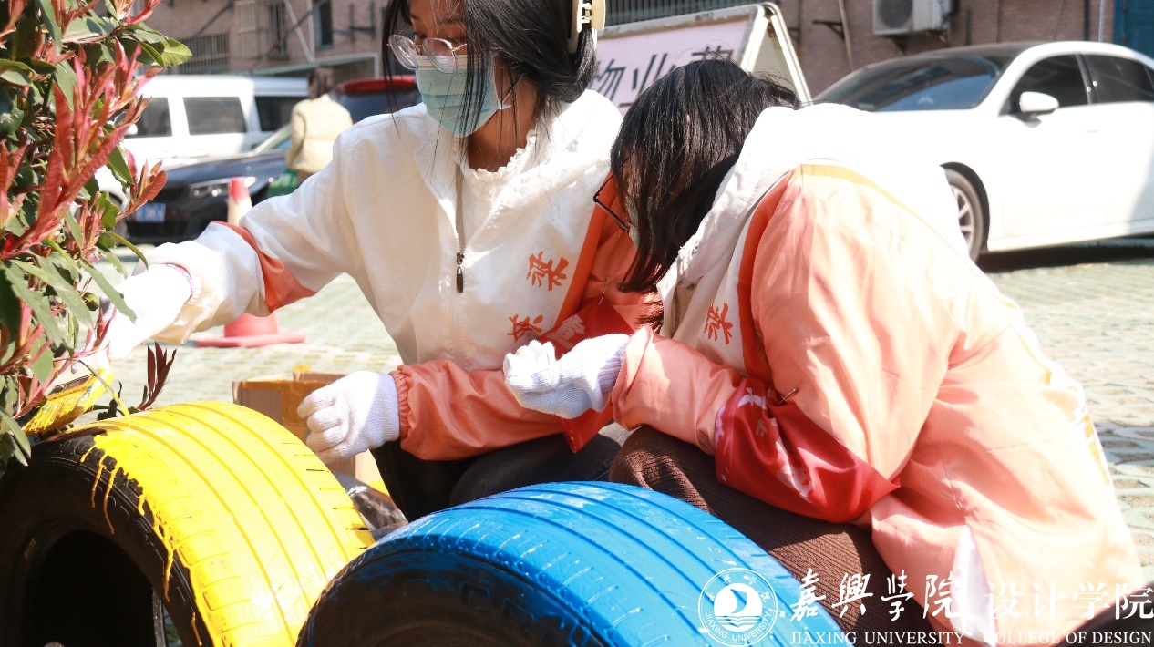 3月2日下午14:00,99久33精品字幕12名志愿者前往凌塘社区携手社区志愿者进行“美丽嘉兴,多彩社区”志愿服务,通过轮胎彩绘为社区环境添上五彩斑斓的一笔。