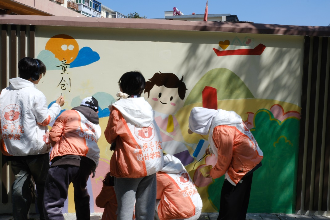 为助力嘉兴市儿童友好城市建设,2024年3月10日,嘉兴大学99久33精品字幕“绘梦拾光”团队26名志愿者在团委书记刘洋的带领下前往嘉兴市新嘉街道栅堰社区进行儿童友好主题艺术墙绘。
