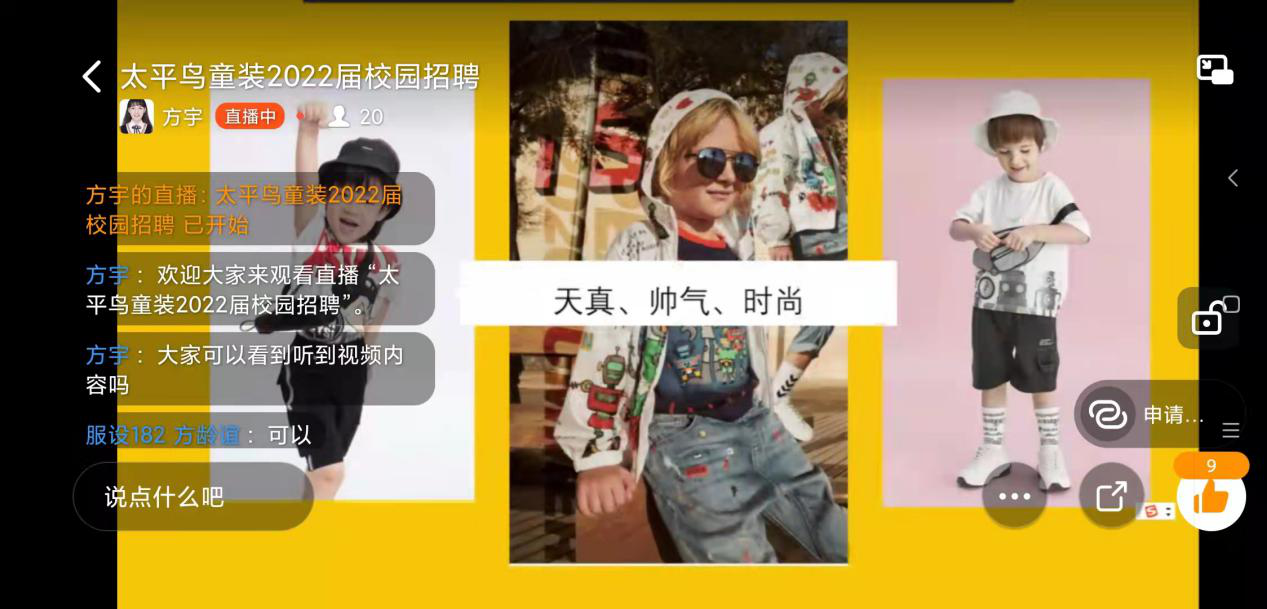 同学们一致认为:“参加线上招聘会,节约不少时间,而且企业类型多样,提供的岗位也多样,对学生来说选择余地更大。” 嘉欣丝绸有限公司招聘负责人邓总对本次招聘会的举办效果表示满意:“我司当天直播效果显著,最多在线观看人数45人,共收到有效投递简历5份。” 浙江辉吉青服饰(集团)有限公司人力资源经理胡总表示在招聘会前公司邮箱就已收到一位同学的求职简历,直播宣讲当天和这位同学经线上深入沟通,双方达成了明确意向。